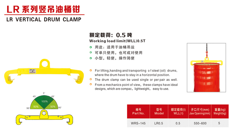 LR豎吊鋼板吊鉗油桶鉗特點: