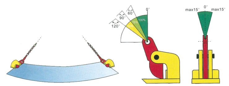 5、額定載荷是指吊鉗成對使用、吊點夾具為60度時允許起吊的最大重量,吊裝作業中兩只或4只配套成組使用